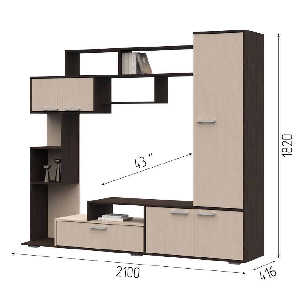 Ниша под ТВ: 975(Ш) х 820(В) х 420(Г) мм.
